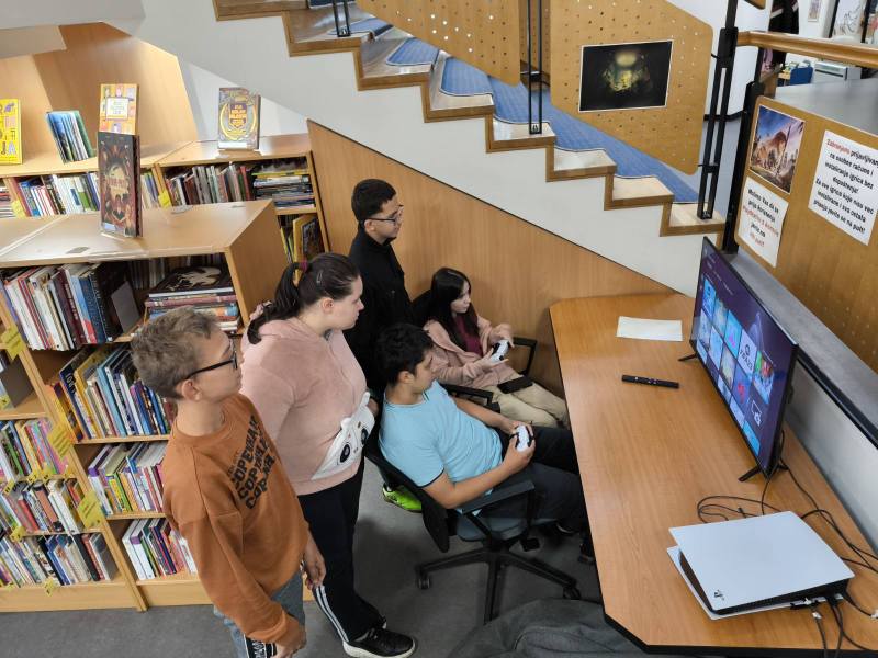 Organizirani posjet za učenike bio je sadržajan. Uz obilazak Knjižnice upoznali su rad na svim odjelima, razgledali zbirke i naučili mnogo o Knjižnici. Potom su u Igraonici poslušali priču na temu koje su sami od papira izradili lijepo stablo s jabukama. Bilo je to druženje uz razgovor, malo glazbe i fini sok. Ipak, čini se za njih najzanimljivije bilo je igranje na PlayStationu!