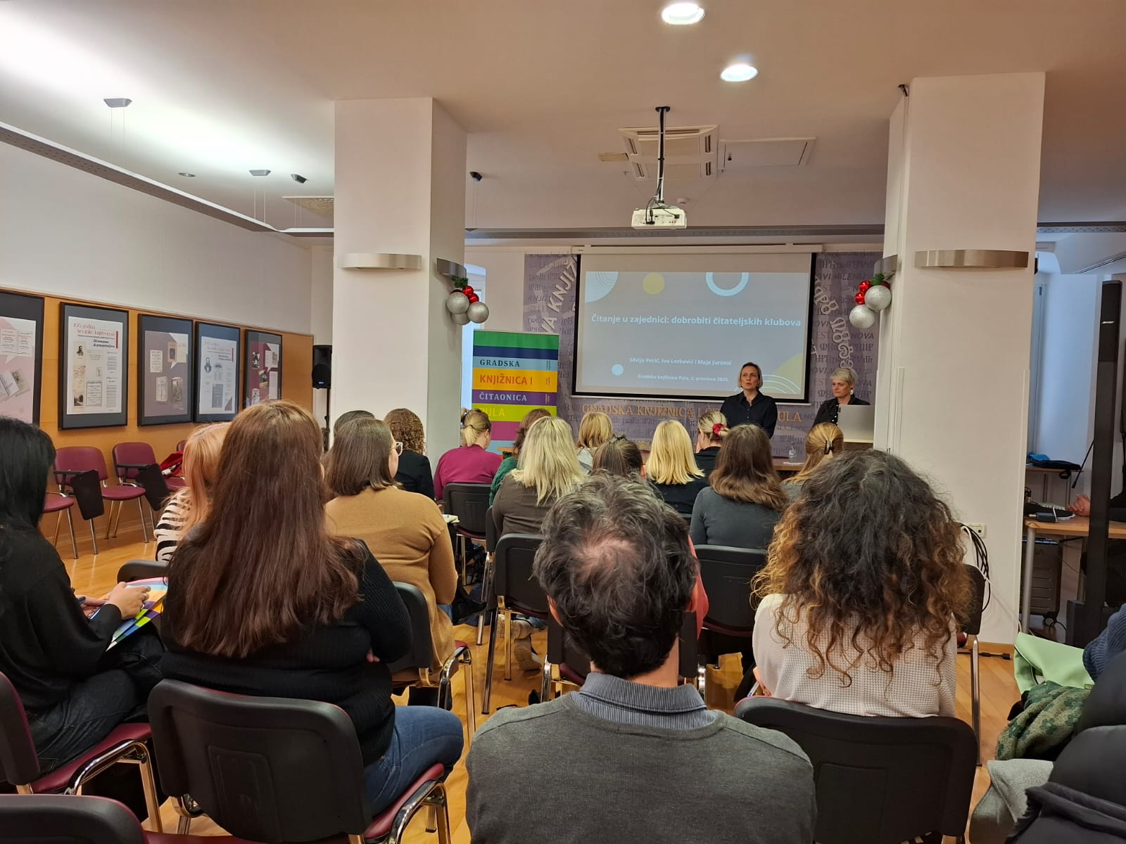 Silvija Perić, voditeljica Matične razvojne službe za narodne i školske knjižnice Virovitičko-podravske županije zajedno s Majom Jurenić iz Gradske knjižnice Ante Kovačića iz Zaprešića održala je izlaganje Čitanje u zajednici: dobrobiti čitateljskih klubova na poziv Gradske knjižnice i čitaonice Pula. Predavanje i radionica bilo je namijenjeno knjižničarima narodnih i školskih knjižnica Istarske županije.