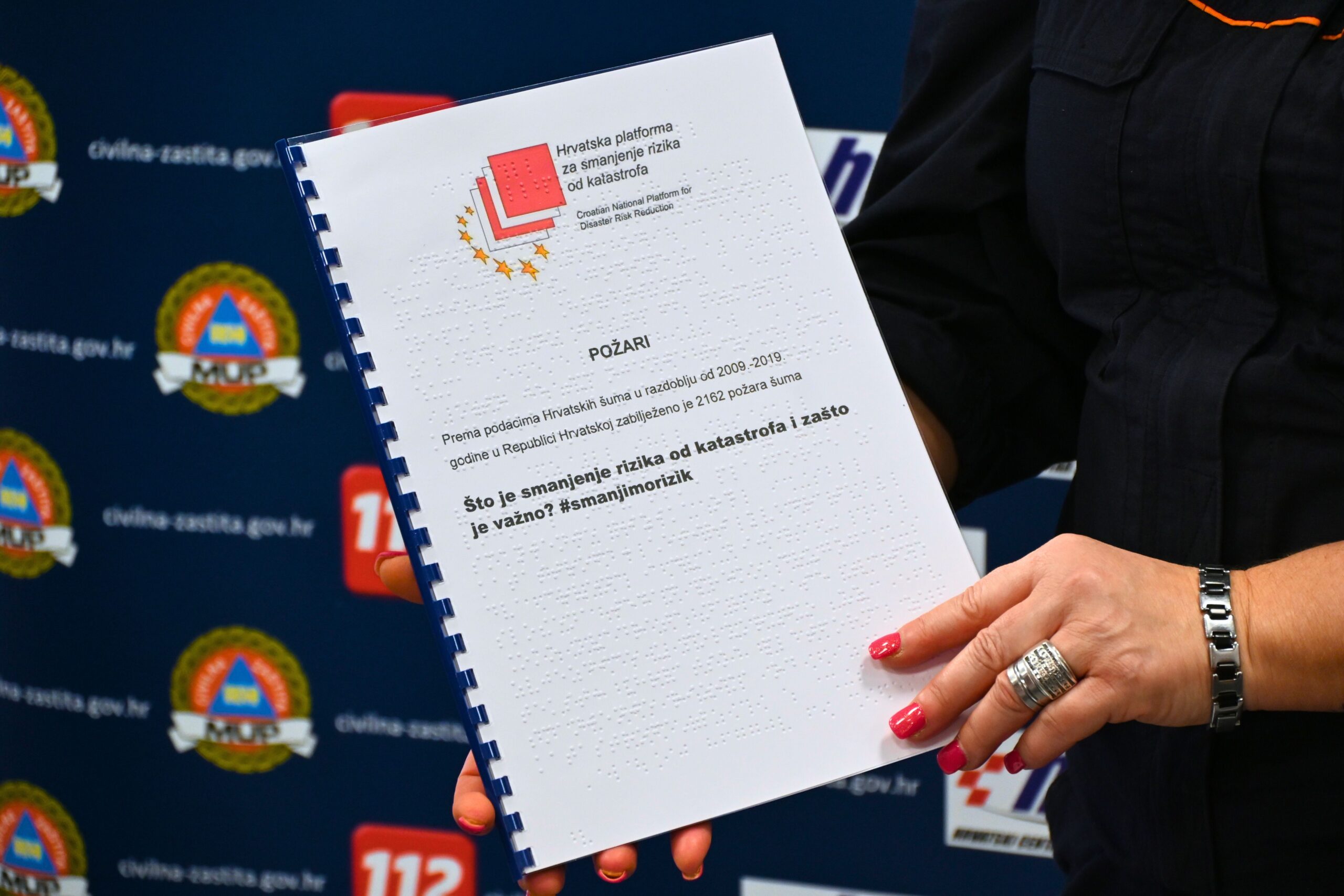 Danas, 19. siječnja, djelatnici Područne službe civilne zaštite Virovitica uručili su Valentini Markovinović, predsjednici Organizacije slijepih Virovitičko-podravske županije, te Robertu Fritzu, ravnatelju Gradske knjižnice i čitaonice Virovitica brošure tiskane na Brailleovom pismu. Brošure obrađuju teme prirodnih i tehnoloških prijetnji poput suše, poplava, klizišta, požara, potresa i olujnog nevremena, s ciljem jačanja svijesti i osobne pripremljenosti osoba s oštećenjem vida.