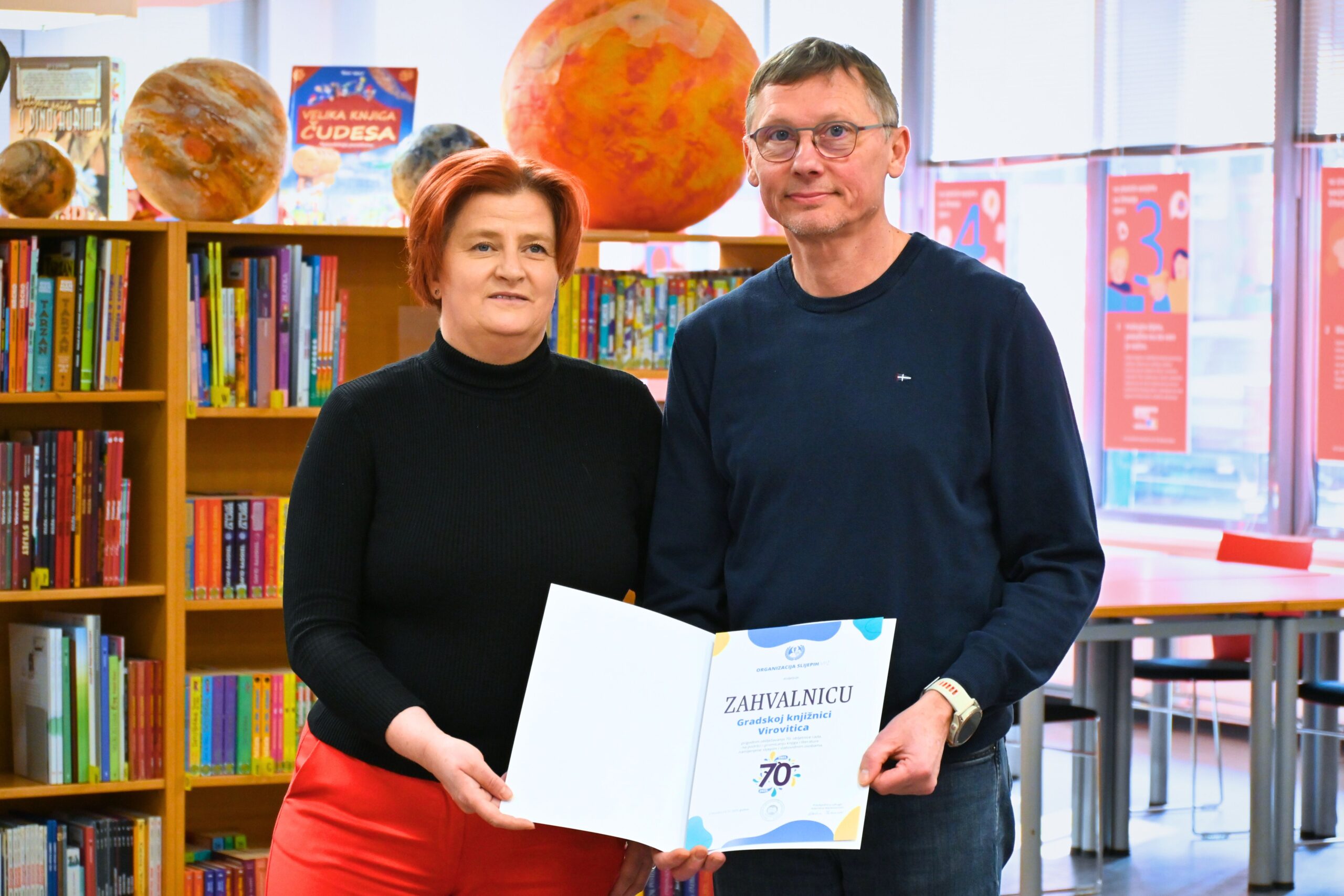 Ujedno, gospođa Markovinović je ravnatelju Knjižnice uručila Zahvalnicu Gradskoj knjižnici i čitaonici Virovitica prigodom obilježavanja 70. obljetnice rada, na podršci i promicanju knjiga i literature namijenjene slijepim i slabovidnim osobama. Suradnja se nastavlja na obostrano zadovoljstvo!