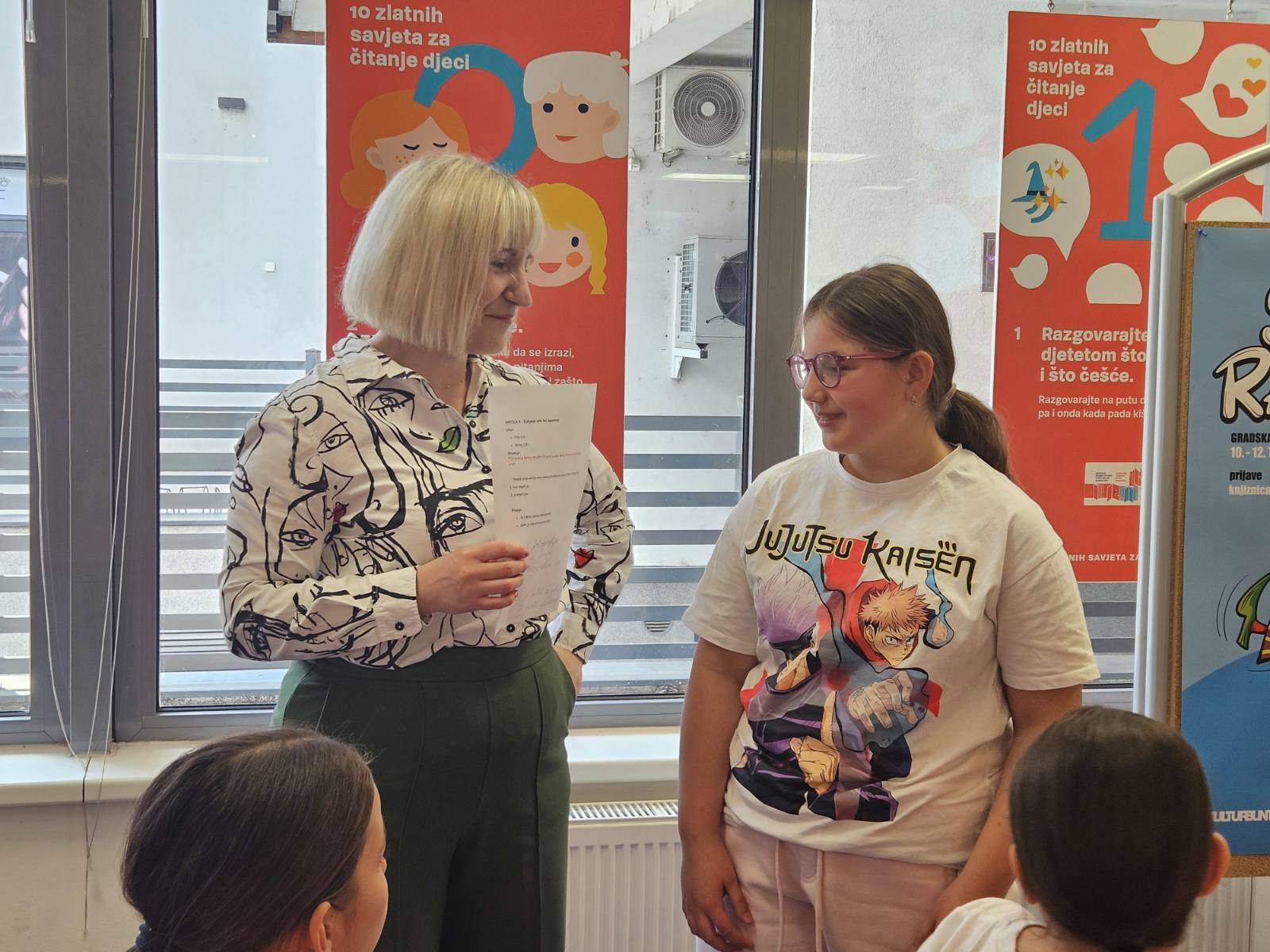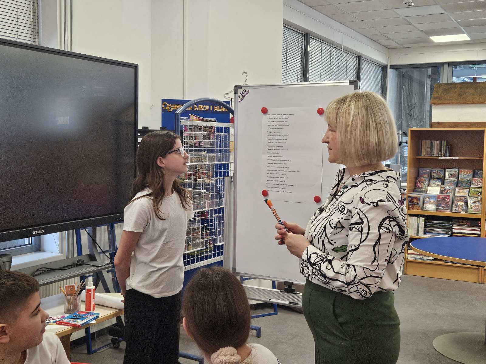 Dani medijske pismenosti obilježeni su i ove godine na Odjelu za djecu i mlade Gradske knjižnice i čitaonice Virovitica. U sklopu obilježavanja, posjetili su nas učenici petog razreda Osnovne škole Ivane Brlić-Mažuranić koji su došli i pratnji knjižničarke Vesne Zvečić i nastavnice hrvatskoga jezika Jelene Bukovčan. Uvodni dio bi je rezerviran za razgovor o pismenosti općenito, o tome što je značilo biti pismen nekad i što znači sada, te koje sve vrste pismenosti poznajemo. Uslijedili su zadatci po skupinama. Učenici su bili podijeljeni u šest skupina, a svaka skupina dobila je zadatak s mogućom situacijom u online okruženju te napisati kako izgleda reakcija na tu situaciju bez empatije i s empatijom. Osim situacija, dodatno su odgovarali na pitanja za raspravu koja su se također nalazila na kartici te ih argumentirali. Nakon prezentacije svojih kartica dobili su i drugi zadatak. Naime na ploči i je bilo dvadesetak ispisanih rečenica koje se također mogu naći u online okruženju, a učenici su pored svake rečenice trebali staviti zelenu, narančastu i crvenu točkicu, ovisno o tome je li komentar jako dobar, prolazan ili loš. Poseban naglasak na empatiji pomogao je učenicima razumjeti kako njihove riječi utječu na druge, dok su aktivnosti vrednovanja komentara dodatno razvijale njihovu sposobnost procjene primjerenog ponašanja u online okruženje. Ovakve radionice važan su korak u oblikovanju odgovornih i medijski pismenih mladih korisnika.