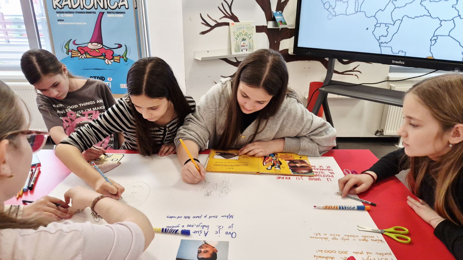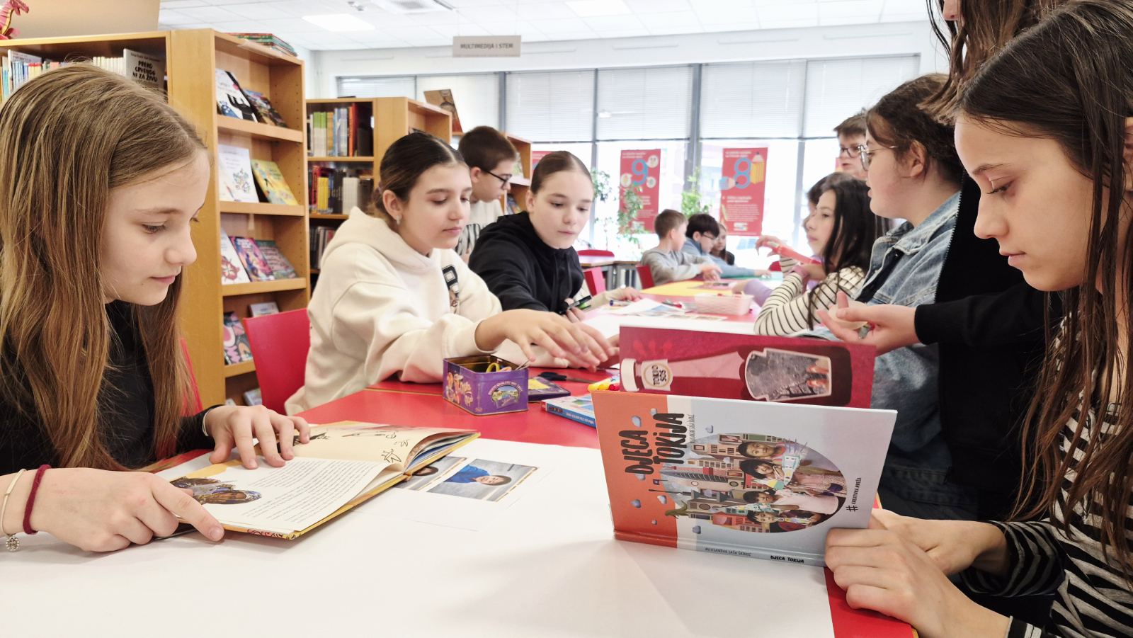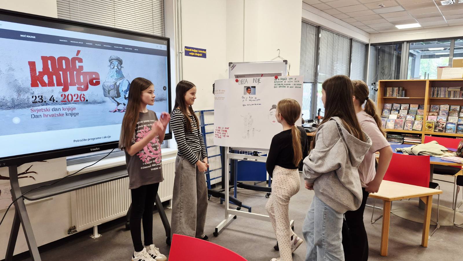 Radionicom “Pobratimstvo djece svijeta” počeli smo s obilježavanjem manifestacije Noć knjige. Na radionici su sudjelovali učenici petog razreda Katoličke osnovne škole u Virovitici koji su došli zajedno s knjižničarkom Mateom Korotaj. Tijekom radionice učenici su bili podijeljeni u skupine, a svaka je skupina imala zadatak usporediti živote djece iz različitih dijelova svijeta svojim životima. Za izradu plakata koristili su se serijom knjiga o djeci iz raznih zemalja. Tako su plakatima koje su izradili i usporedili sa svojima, opisali živote djece iz Indije, Konga, Sahare i Himalaje. Osvijestili su koliko pojedina djeca žive teško, ali unatoč tome su sretni te shvatili da su i oni samo djeca te zavrjeđuju poštovanje i ljubav gdje god da žive i kako god da žive. Na kraju smo zaključili da, baš poput knjiga koje nas povezuju kroz priče, i mi u svojoj različitosti dijelimo iste snove, osjećaje i pravo na prijateljstvo, jer svi pripadamo jednom velikom pobratimstvu djece svijeta.