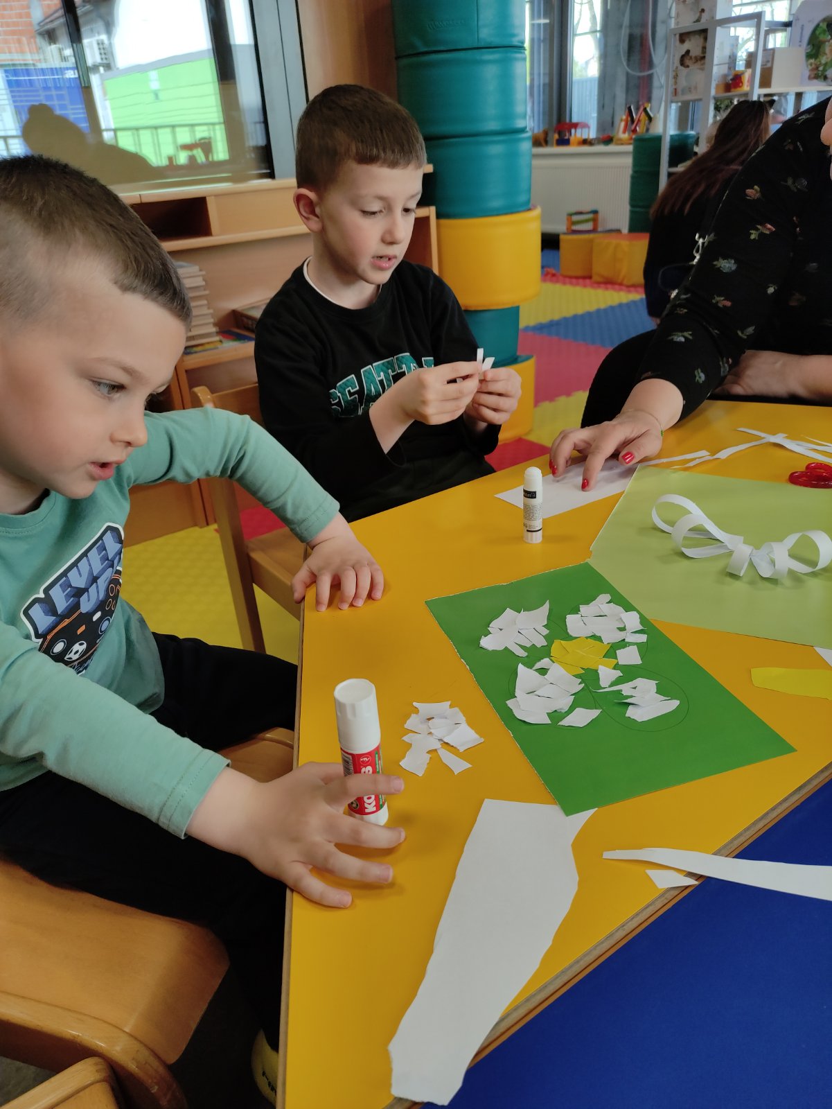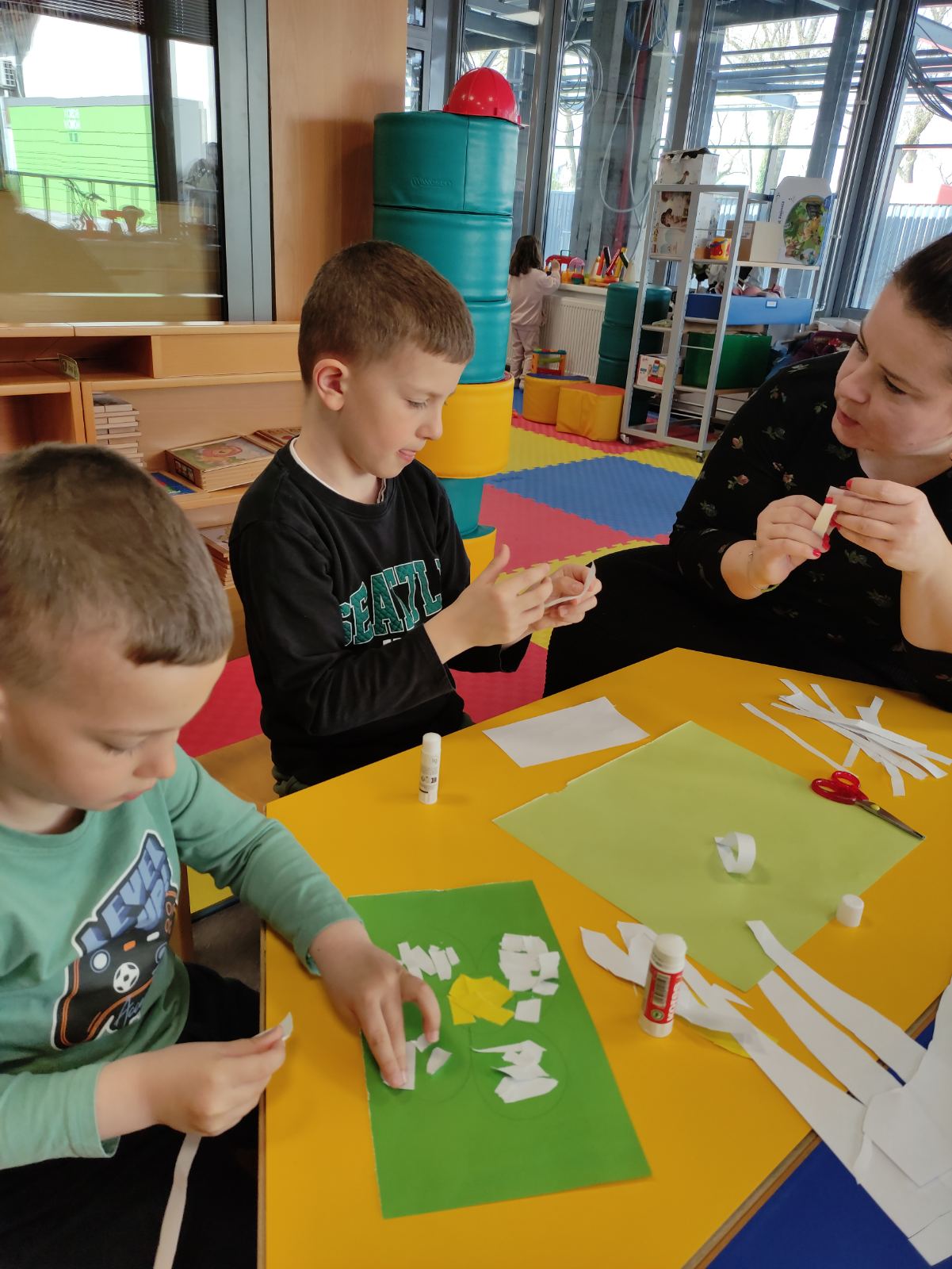 Prekrasne boje proljeća poslužile su kao inspiracija najmlađima na subotnjoj radionici, gdje su kroz igru i kreativni rad istraživali svijet oko sebe. Posebnu čar događanju dala je pročitana priča Ježeva kuća – proljeće, koja je dodatno potaknula dječju maštu i želju za stvaranjem. Vrijednim ručicama, koristeći tehnike rezanja, trganja i lijepljenja, mališani su oblikovali raznobojno cvijeće. Tijekom druženja, osim što su nastali prekrasni dječji radovi, istovremeno su se razvijale i važne vještine poput fine motorike, koordinacije oko – ruka, percepcije te snalaženja u vremenu i prostoru.
